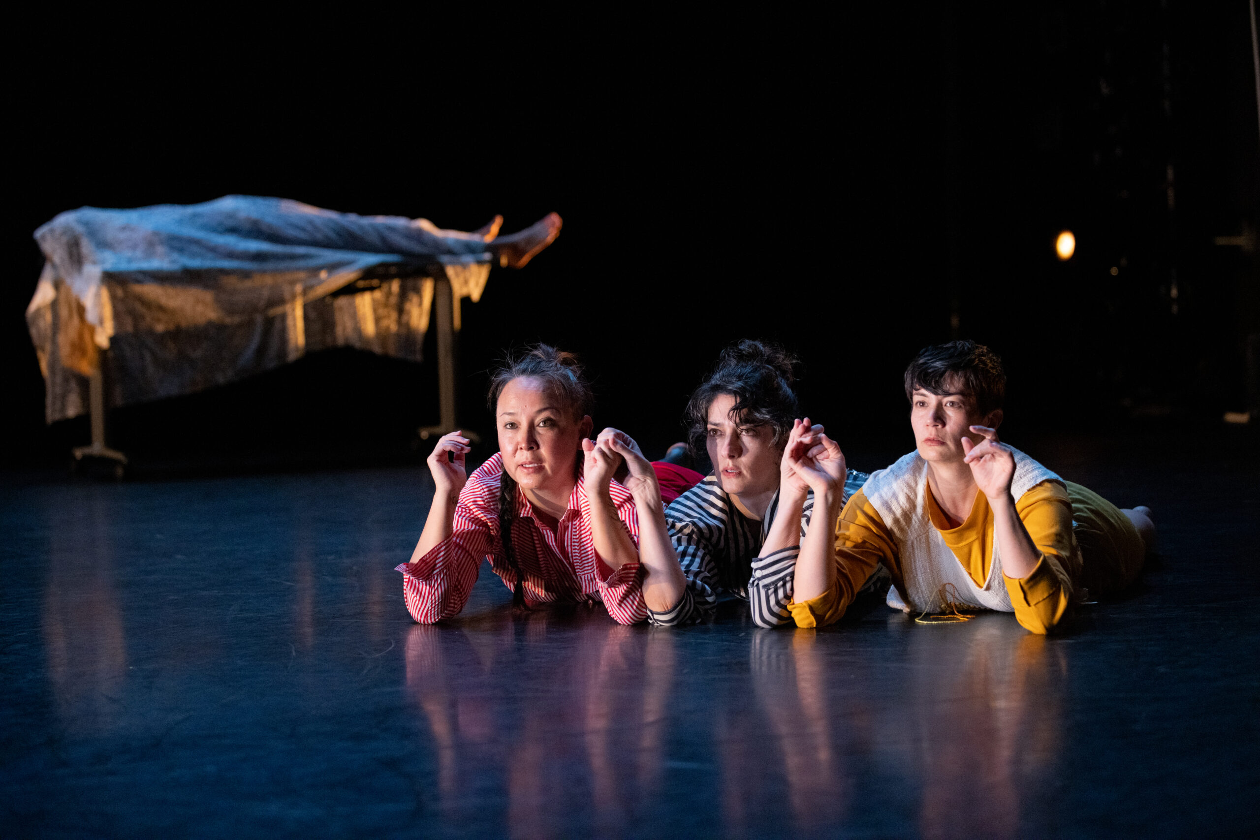 Inspired by early & contemporary death and grieving rituals, three archetypal female outcasts (facing their own aging bodies) tell an ancient story that is also the present. Narrative and time is constructed and deconstructed in cyclical reverie. This seasoned cast of performers (and younger ghosts) explore communal loss and mourning, reclaiming wildness, as they attend to the devastating, absurd, and sacred ways we come to care for bodies and ritualize endings. mourning after mornings is being made in collaboration with Anna Azrieli, Rebecca Serrell-Cyr, maura nguyễn donohue, along with composer Soraya Odishoo, and lighting designer Kathy Couch.
